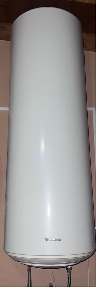 ATENTOS NO SE A LLEGADO A USAR NUEVO .Termo eléctrico de color blanco, ideal para calentar agua. - Diseño cilíndrico vertical. - Termómetro indicador de temperatura.