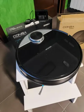 Robot aspirador Conga 3390 en color negro. Incluye su base de carga y accesorios. - Robot aspirador Conga 3390 - Base de carga - Accesorios