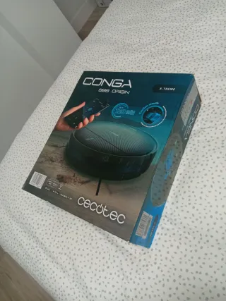 Aspirador robot Conga 5090. Lleva todos los accesorios menos el trapo de la mopa y tiene depósito de fregado y aspirado. Incluyo base pero no cargador de base. Funciona bien y mapea, el problema es que no tiene la batería. - Diseño redondo y moderno. - Color negro y detalles en verde azulado. - Base de carga incluida.