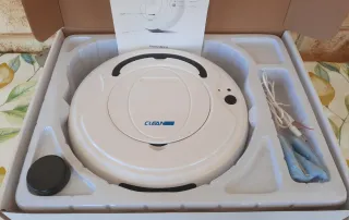 Robot aspirador de la marca Clean Robot, ideal para mantener tu hogar limpio. - Color blanco. - Incluye manual de instrucciones. - Base de carga y accesorios. Nuevo, solo lo use para probarlo y va muy bien, pero es recomendable para suelos lisos y rugosos sin bordes.