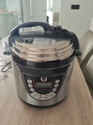 Olla eléctrica de la marca GM, ideal para cocinar una gran variedad de platos de forma rápida y sencilla. - Diseño moderno y funcional. - Acabado exterior en acero inoxidable y negro.