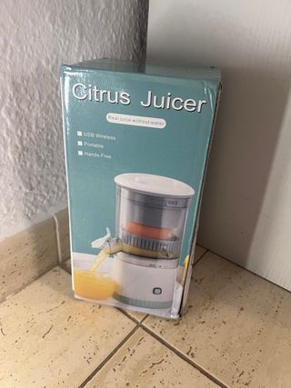 Exprimidor eléctrico de cítricos, ideal para zumo fresco sin complicaciones. - Carga USB con cable incluido. - Diseño portátil y compacto. Envío rápido.
