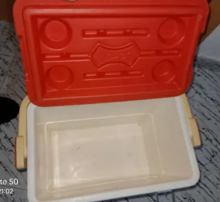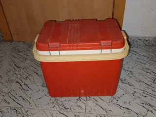 Nevera vintage de la marca Rodex, fabricada en los años 70. Un objeto con un diseño retro característico de la época.Capacidad 40L. - Color rojo y crema. - Asa lateral para facilitar su transporte.