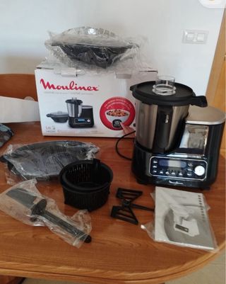 NUEVO SIN ESTRENAR CON SU CAJA Y ACCESORIOS: Robot de cocina Moulinex Clickchef, ideal para preparar tus comidas diarias. - Capacidad de 3,6L. - Potencia de 1400W. - 5 programas automáticos. - Incluye 5 accesorios. - Báscula lateral y digital. En Amazon cuesta 429,50€