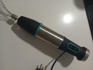 Batidora de mano Titan Black con una potencia de 1200W. - Diseño en color negro y acero inoxidable. - Incluye accesorio de varillas para montar. Tiene muy poco uso ya que el brazo se perdió