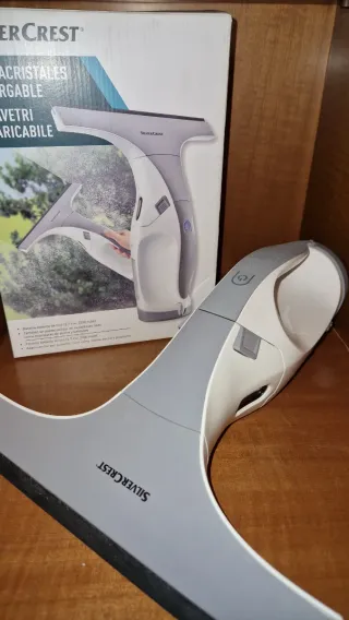 Limpiacristales eléctrico Silver Crest. Solo incluyo lo que de ve en la imagen. No trae cargador - Batería de litio (3.7V, 2000 mAh). - Se puede usar en superficies como mamparas de ducha y lavabos. - Autonomía por carga: hasta 60 minutos.