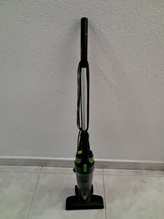 Aspirador ligero y práctico, ideal para limpiezas rápidas. - Diseño moderno en negro y verde. - Mango ergonómico para un agarre cómodo. - Cable de alimentación de longitud - Filtro algo sucio