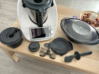 Robot de cocina Thermomix TM6 de Vorwerk. Diseñado para facilitar la preparación de tus comidas. - Color blanco. - Pantalla táctil. - Incluye espátula. - rejilla antisapicaduras -cestillo -martiposa -varo a