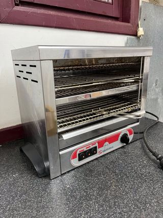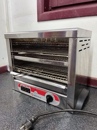 Tostadora industrial de la marca Sammic, modelo TP-20. Fabricada en acero inoxidable. - Diseño robusto y duradero. - Múltiples rejillas para tostar. - Controles frontales.