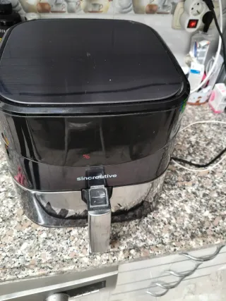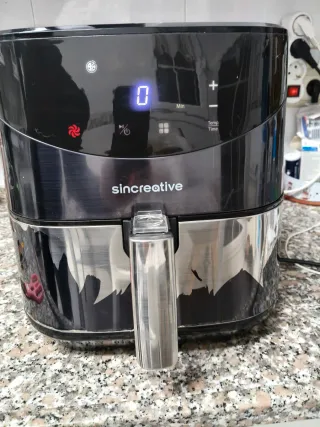 Freidora de aire Sincreative en color negro y plateado. - Diseño moderno y elegante. - Panel de control digital. - Asa extraíble para facilitar el uso.
