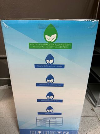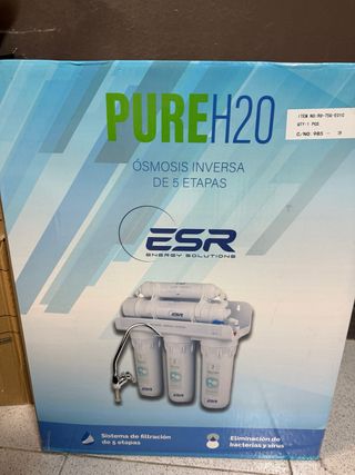 Sistema de ósmosis inversa PUREH2O de 5 etapas, sin abrir y en su embalaje original. - Modelo: PUREH2O - Número de etapas: 5 - Marca: ESR ENERGY SOLUTIONS - Tipo: Ósmosis Inversa - Condición: Nuevo, sin abrir
