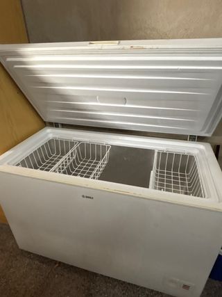 Congelador horizontal de gran capacidad, ideal para almacenar alimentos. - Diseño blanco. - Incluye cestas interiores para organizar. - Marca BRU.