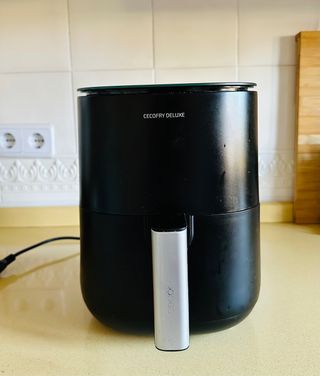 Freidora de aire Cecofry de la marca Cecotec. Diseño moderno y compacto. - Color negro. - Asa extraíble para facilitar su uso. - Dispensador automático de aceite.