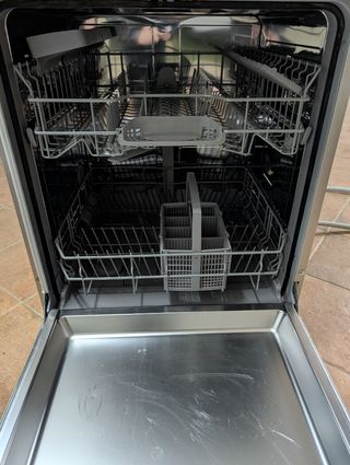 Lavavajillas de la marca Samsung en color blanco. - Diseño moderno y funcional. - Panel de control intuitivo.