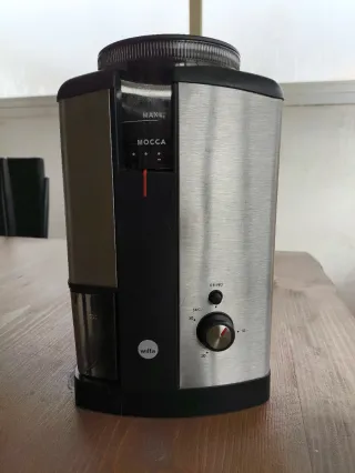 Molinillo de café de la marca Wilfa. Modelo 605768, 160 vatios, 180 g, Inox Muelas en perfecto estado! - Diseño moderno en acero inoxidable y negro. - Depósito para café molido. - Selector de molienda con diferentes ajustes.