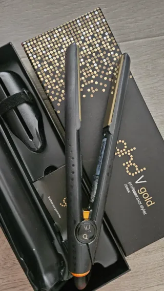 Plancha de pelo ghd V gold classic. - Diseño elegante en color negro y detalles dorados. - Placas de cerámica para un acabado profesional. - Ideal para alisar y crear ondas.