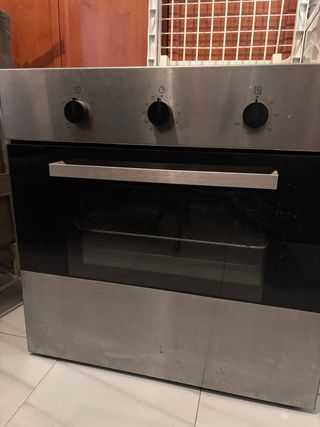 Horno eléctrico de acero inoxidable. - Panel de control con mandos. - Puerta de cristal. - Diseño moderno. No enciende luz pero funciona