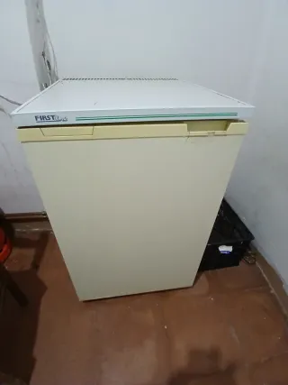 Nevera compacta de color blanco con el logo ok. en la parte frontal. 48cm de alto-44cm de ancho-47 de profundo usada pero en buen estado, tiene unas manchas azules en la parte de arriba. Enfría mucho