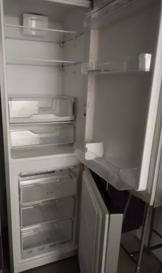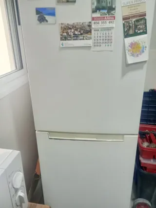 Nevera Indesit de color blanco. - Diseño moderno y elegante. - Puerta superior y congelador inferior. URGE VENTA. A recoger como tarde el día 16 a las 19:00. mudanza.