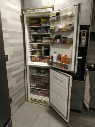 Vendo por mudanza Nevera de la marca Bosch. Diseño moderno y funcional. - Acabado en acero inoxidable. - Amplio espacio interior. - Eficiencia energética. Tiene marcas en la puerta, con los imanes se disimulan bastante. La parte baja del congelador le faltan las tapas de dos cajones.