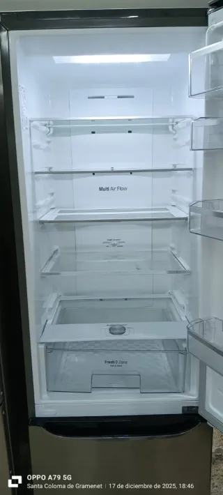 Nevera combi de la marca LG con acabado en acero inoxidable. Diseño moderno y elegante. - Puertas reversibles. - Cajón de congelación. - Panel de control digital. NEVERA MARCA L G NO FROST QUE NO HACE HIELO CLASE ENERGÉTICA A+ QUE TE AHORRAS ENERGÍA ALTURA 190 cm ANCHO 60 cm ESTA EN PERFECTAS CONDICIONES SOMOS UNA TIENDA DE SEGUNDA MANO CON LOS PRECIOS MÍNIMO EN TIENDA BARCELONA CON EL SERVICIO TÉCNICO Y GARANTÍA DE 6 MESES Y FACTURA EL TRANSPORTE ES APARTE AL ENVÍO... ENTREGAMOS EL MISMO DÍA AL DOMICILIO MAS INFORMACIÓN LLAMAR AL NÚMERO 676805023 WHATSAPP