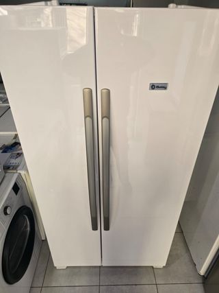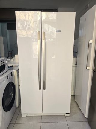 Nevera americana de la marca Balay en color blanco. Diseño moderno con tiradores plateados, de 1,80 de alto por 90 cm de ancho completamente no frost que no te hace hielo clase energética A++ que te ahorra energía con cajón de zona cero para la descongelación de los alimentos con servicio técnico y garantía de 6 meses te lo entregamos en casa con un coste de envío - Puertas de gran capacidad. - Acabado brillante.