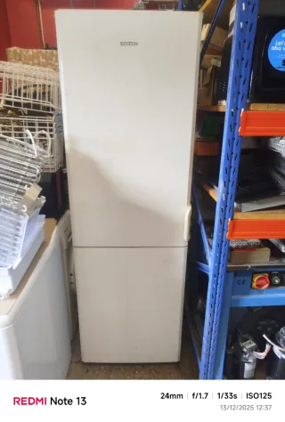 Frigorífico combi Beko de color blanco. Dispone de congelador en la parte superior y frigorífico en la inferior. Con golpe de fábrica solo a nivel estético. Se ha usado solo 3 años. Debe venirse a buscar. - Diseño moderno y funcional. - Acabado en blanco.