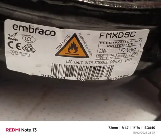 Para neveras combis no Frost Compresor Embraco en buen estado, modelo FMXDSC. - Voltaje: 220-240V. - Gas refrigerante: R600a. - Tipo: L/MBP. Estamos en Ronda Frances Macía 72 Mataró, CP : 08302 Mataró de lunes a sábado de 10 a 13:30 y de 16 a 20:30. tel: 675156375/ 697 42 35 84
