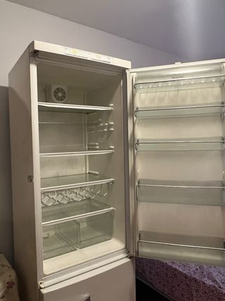 Nevera Samsung de color blanco con tecnología No Frost. Funciona muy bien. Modelo: Samsung RL41SBSW Sistema: No Frost Clase climática: SN-T Refrigerante: R600a Consumo eficiente Temperatura regulable con varios niveles Luz interior Congelador amplio con 3 cajones grandes + 1 bandeja superior Frigorífico con varias baldas de cristal y cajón para verduras Cocina de gas Corberó con horno integrado. Un electrodoméstico funcional para tu hogar. Medidas horno: - altura: 85 - ancho: 50 - profunditat: 50