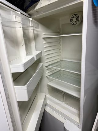 Nevera Balay en buen estado.funciona perfectamente esta enfocada si puede probar antes de comprar falta un poco de limpieza nada más - Color blanco. - Estantes de cristal. - Cajones inferiores de plástico azul.