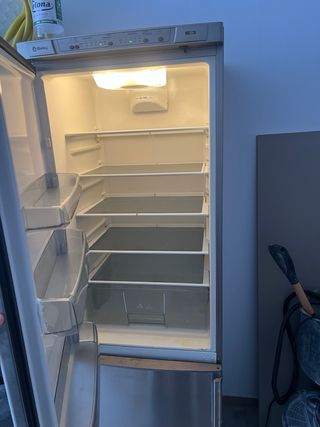 Nevera marca Balay No Frost, en muy buen estado de conservación. No hace escarcha y enfria perfectamente. Ha estado siempre bien cuidada y nunca pegada a la pared, lo que garantiza una mejor ventilación y mayor durabilidad. Marca fiable, funcionamiento impecable y lista para usar. Ideal si busca una nevera de calidad, limpia y bien mantenida