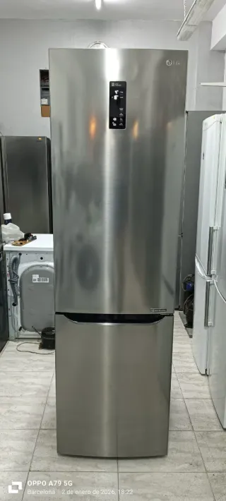 Nevera LG de acero inoxidable, ideal para tu hogar. Altura 185 ancho 60 combi nofrost garantía 6 meses transporte incluido a toda Barcelona