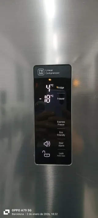 Nevera LG en buen estado, ideal para tu hogar. Se incluye garantía y transporte. - Diseño moderno en acero inoxidable. - Panel de control digital integrado. Altura 2 metro ancho 60 combi nofrost garantía 6 meses transporte incluido a toda Barcelona clase a+++