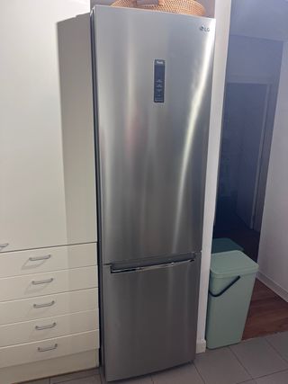 Nevera combi LG con acabado en acero inoxidable. Diseño moderno y elegante. - Puertas reversibles - Panel de control digital - Inverter linear - Bajo consumo, categoría A+++ - No Frost Es muy espaciosa y práctica. Está en muy buen estado general, los cajones y las baldas están perfectos. La vendo porque me han ofrecido una americana. La tengo en una planta baja por lo que es muy fácil el traslado para transportarla.