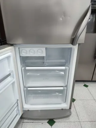 Nevera combi LG en acabado plateado. Altura 2 metro de ancho 60cm No frost Enrgia A+ Funciuna parfetamente bien la vende con 6 meses de garantia Transport inculido en Barcelona Llevamos Antigua tambien si quires
