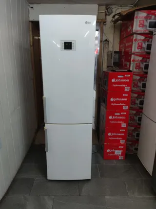 Nevera combi LG de color blanco, con dos puertas. Clase eficiencia energética A++ - Diseño moderno. - Tiradores integrados. No Frost. Altura 190cm. Ancho 60cm. Funciona perfectamente. Tiene 6 meses de garantía con factura. Transporte y instalacion es gratuito en Barcelona. Entrega en mismo día al domicilio. para más información llamar o WhatsApp. 673 333 011