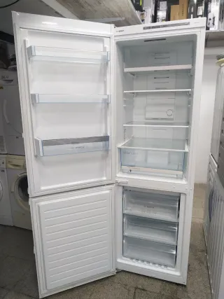 Nevera de la marca Bosch en color blanco. Diseño moderno y funcional. - Puerta superior y cajón inferior. - Logo de la marca visible en la parte superior. NEVERA MARCA BOSCH NO FROST QUE NO HACE HIELO CLASE ENERGÉTICA A+ QUE TE AHORRAS ENERGÍA ALTURA 203 cm ANCHO 60 cm FONDO 63 cm ESTA EN PERFECTAS CONDICIONES SOMOS UNA TIENDA DE SEGUNDA MANO CON LOS PRECIOS MÍNIMO EN TIENDA BARCELONA CON EL SERVICIO TÉCNICO Y GARANTÍA DE 6 MESES Y FACTURA EL TRANSPORTE ES APARTE AL ENVÍO... ENTREGAMOS EL MISMO DÍA AL DOMICILIO MAS INFORMACIÓN LLAMAR AL NÚMERO 676805023 WHATSAPP