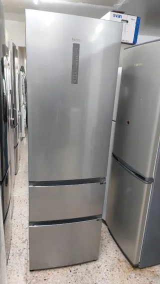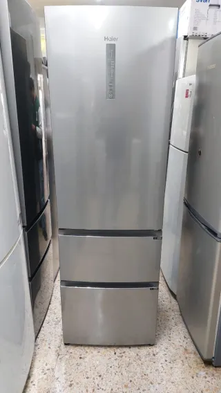 Nevera Haier de color plateado con diseño moderno y tres cajones. - Acabado en acero inoxidable. - Panel de control digital. - Cajones inferiores para congelador. NEVERA MARCA HAIER NO FROST QUE NO HACE HIELO CLASE ENERGÉTICA A+ QUE TE AHORRAS ENERGÍA ALTURA 190 cm ANCHO 60 cm ESTA EN PERFECTAS CONDICIONES SOMOS UNA TIENDA DE SEGUNDA MANO CON LOS PRECIOS MÍNIMO EN TIENDA BARCELONA CON EL SERVICIO TÉCNICO Y GARANTÍA DE 6 MESES Y FACTURA EL TRANSPORTE ES APARTE AL ENVÍO... ENTREGAMOS EL MISMO DÍA AL DOMICILIO MAS INFORMACIÓN LLAMAR AL NÚMERO 676805023 WHATSAPP