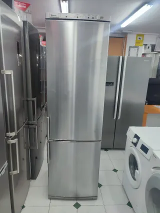 Nevera combi de acero inoxidable con congelador inferior. Altura 2 metro de ancho 60cm No frost Energía A+++ bajo consumo Funciona perfectamente bien la vendo con 6 meses de garantía Transporte incluído en Llevamos antigua también Gracias