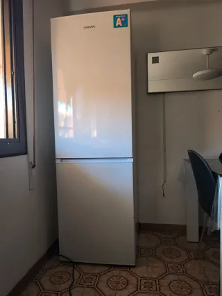 Nevera combi en color blanco. Espacio interior optimizado, los cajones tanto de la nevera como los del congelador están intactos. Funciona perfectamente, tiene una rosca para adaptar la temperatura. Enfría mucho aunque esté llena, la vendo porque me mudo a un piso que ya tiene nevera. El desperfecto que tiene es que la puerta se está oxidando por fuera pero con una capa de pintura queda como nueva.