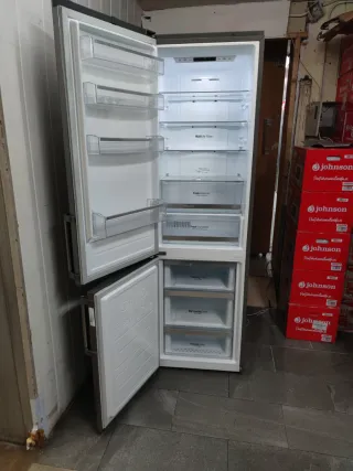 Nevera combi Bosch altura 1.85cm de ancho 60cm No Frost Energía A++ bajo consumo Funciona perfectamente bien la vendo con 6 meses de garantía Transporte incluido en Barcelona Llevamos antiguo también si quieres