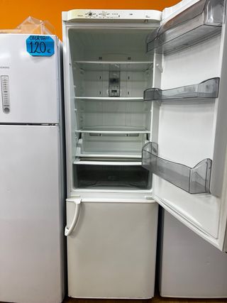 Nevera combi de la marca Fagor. Diseño moderno en acabado plateado. MEDIDAS 2m X 59cm FUNCIONA PERFECTAMENTE EN BUEN ESTADO Y CONDICIONES - Puerta superior para frigorífico. - Puerta inferior para congelador. - Tiradores integrados. - GARANTIA 6 MESES CON FACTURA - TRANSPORTE GRATIS EN BARCELONA - MAS INFO ESCRIBANME - WHATSAPP 610982641
