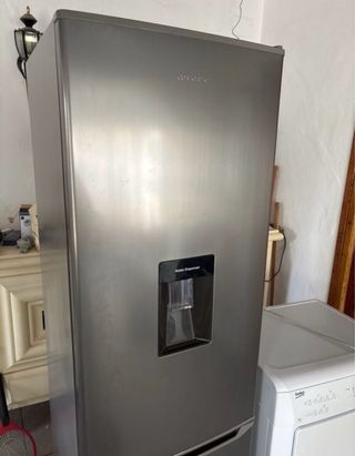 Nevera Samsung Combi con tecnología No Frost y dispensador de agua integrado. Su diseño moderno en acabado plateado se adapta a cualquier cocina. - Tecnología No Frost para evitar la formación de hielo. - Dispensador de agua exterior para un acceso fácil. - Diseño Combi (congelador en la parte inferior). - Acabado en acero inoxidable. Se vende por mudanza. Funciona perfectamente.