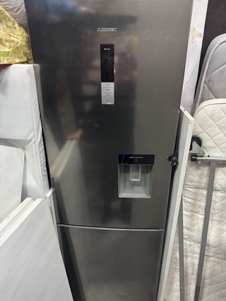 Nevera Jocel con tecnología No Frost. Diseño moderno en color gris. - Dispensador de agua integrado. - Panel de control digital. Practicamente nueva se uso unos meses y al mudarme ya habia nevera y se guardo en el trastero. No consume nada no hace hielo y tiene dispensador de agua fria