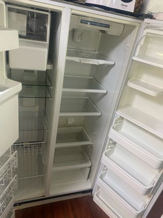 Repuestos, cajones, baldas y accesorios/repuestos de frigorifico y congelador de nevera americana Samsung Twin Cooling en excelentes condiciones. .Baldas,organizadores,estantes de puertas. .Botellero ya no lo tengo .Huevera .Depósito agua dispensador. .Depósito/maquina hielo .Cajones transparentes para frigo y congelador. Cada tipo tiene un precio: .baldas: 20€ .cajones: 40€ .estantes de puerta: 20€ .depósito agua:35€ .máquina/deposito hielo:45€ Medidas: Baldas: 2 de 45x37, 2 de 35x41,5 y 4 de 30x30 Cajones nevera: ancho 45 cm y de alto uno 23 y otro 25 Cajones congelador: ancho 29,5 cm, alto 23 y fondo 32,5/28