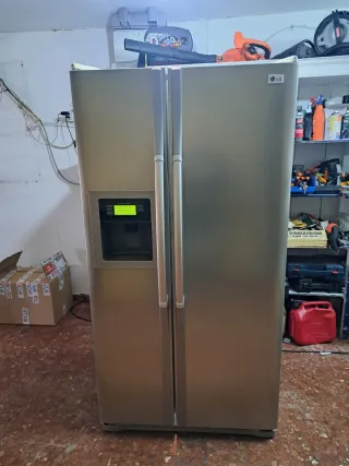 Nevera LG de estilo americano, con acabado en acero inoxidable. El modelo se ve en la imagen del final. Precio nueva 1199€ - Dispensador de agua y hielo integrado. - Diseño moderno y elegante.