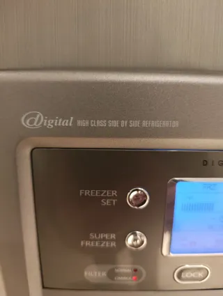 Nevera de doble puerta de la marca Daewoo. Diseño moderno y funcional. - Dispensador de agua y hielo integrado. - Panel de control digital. - Tiradores ergonómicos.