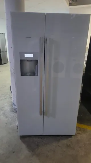 Nevera tipo americana BOSCH en perfecto funcionamiento, muy cuidada y impecable por dentro. 📅 Año: 2021 (4–5 años de uso) 🔧 Estado: funciona todo perfectamente Características: Diseño side by side en acero inoxidable ❄️ Sistema Total NoFrost (no hace hielo) 🔇 Muy silenciosa (42 dB) 🧊 Frigorífico: 372 L ❄️ Congelador: 208 L Sin toma de agua / sin dispensador A tener en cuenta: 👉 Tiene una pequeña abolladura (bollito) en una de las puertas, solo estética (ver foto). No afecta en absoluto al funcionamiento. Ideal para familia o cocina grandes. Nevera muy espaciosa,fiable y duradera.