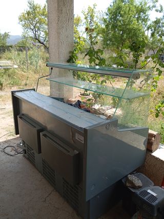 Vitrina frigorífica en buen estado, sin estrenar. Ideal para negocio. - Medidas: 1,5m de ancho x 80cm de fondo (aprox.) - Diseño de mostrador. - Estructura robusta y resistente.