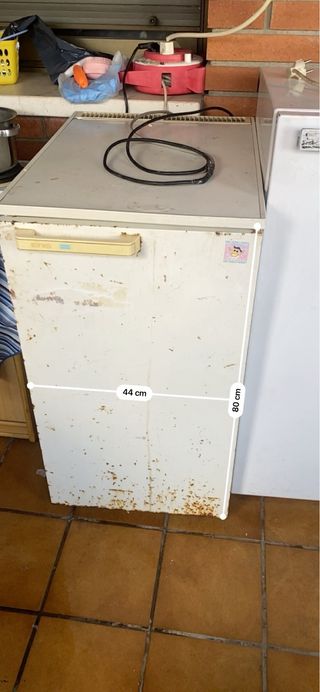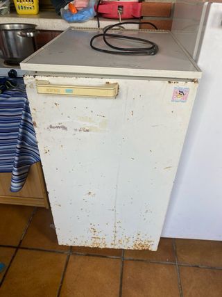 Nevera blanca clásica con congelador arriba, en estado aceptable tras limpieza profunda. Usada durante años por los dueños anteriores, pero está como el primer día: sin golpes, todo funcional y lista para usar. Ideal para cocinas de alquiler o segunda vivienda.[Recogida en Vallecas ] Características: • Marca/modelo: Blanca clásica (buscaré placa interna para detalles exactos) • Altura aprox: 170 cm, ancho 80 cm, profundidad 60 cm • Frigorífico espacioso + congelador independiente • Limpia por dentro y por fuera, estantes completos Precio: 130€ (negociable, prueba en persona).